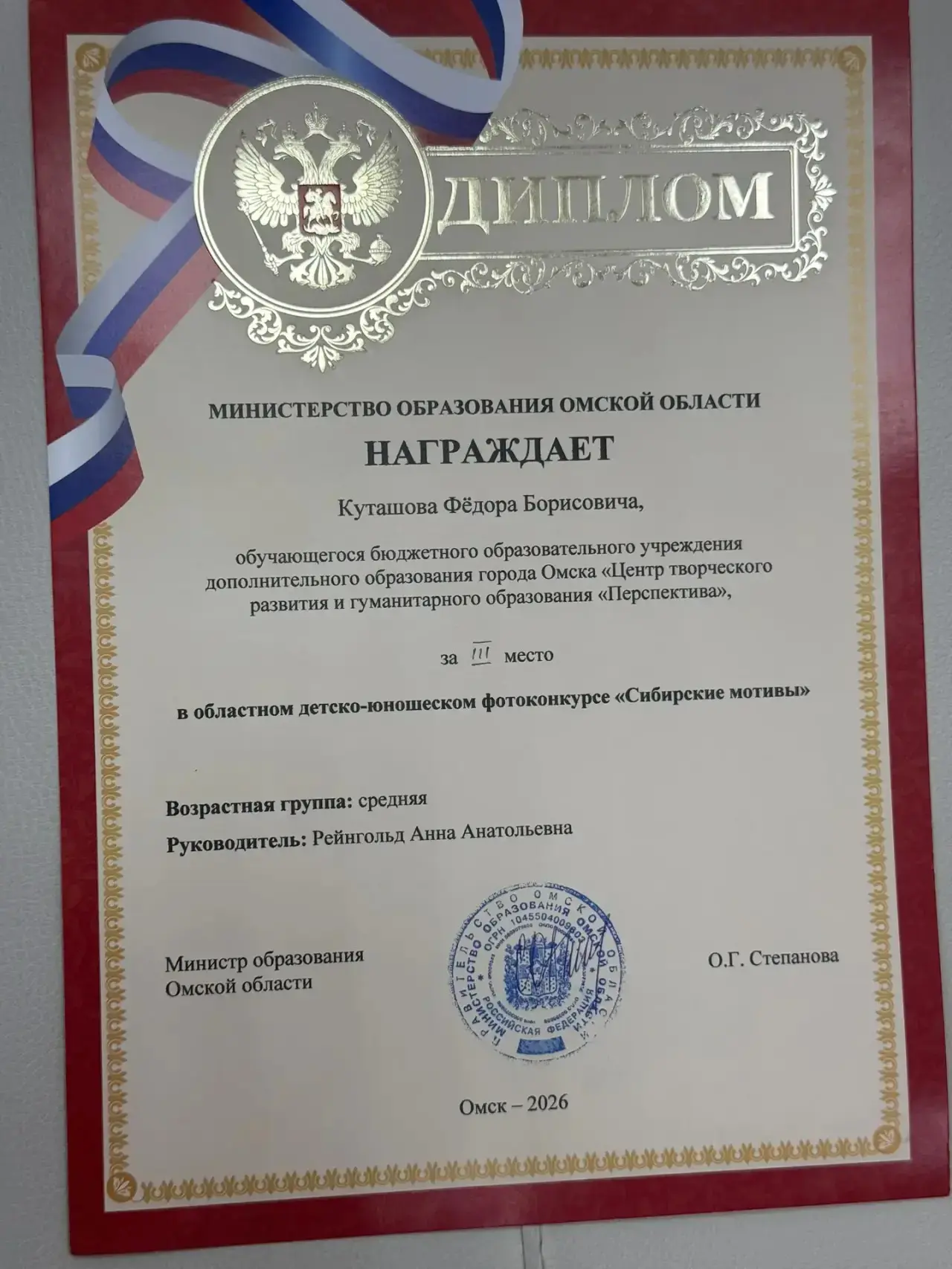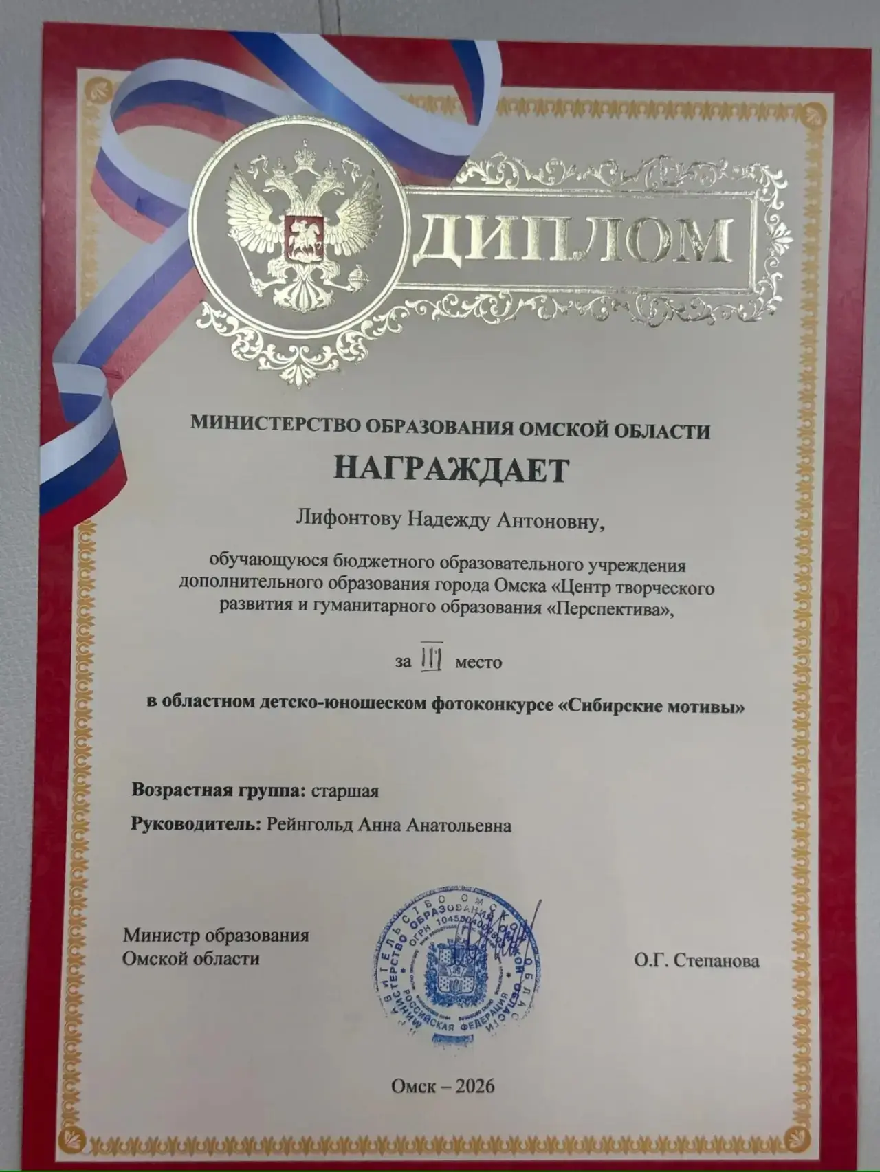 12 марта 2026 года состоялся очный этап областного детско-юношеского фотоконкурса "Сибирские мотивы", в котором детское объединение «Позитив»(руководитель Рейнгольд Анна Анатольевна) на протяжении нескольких лет принимает активное участие.