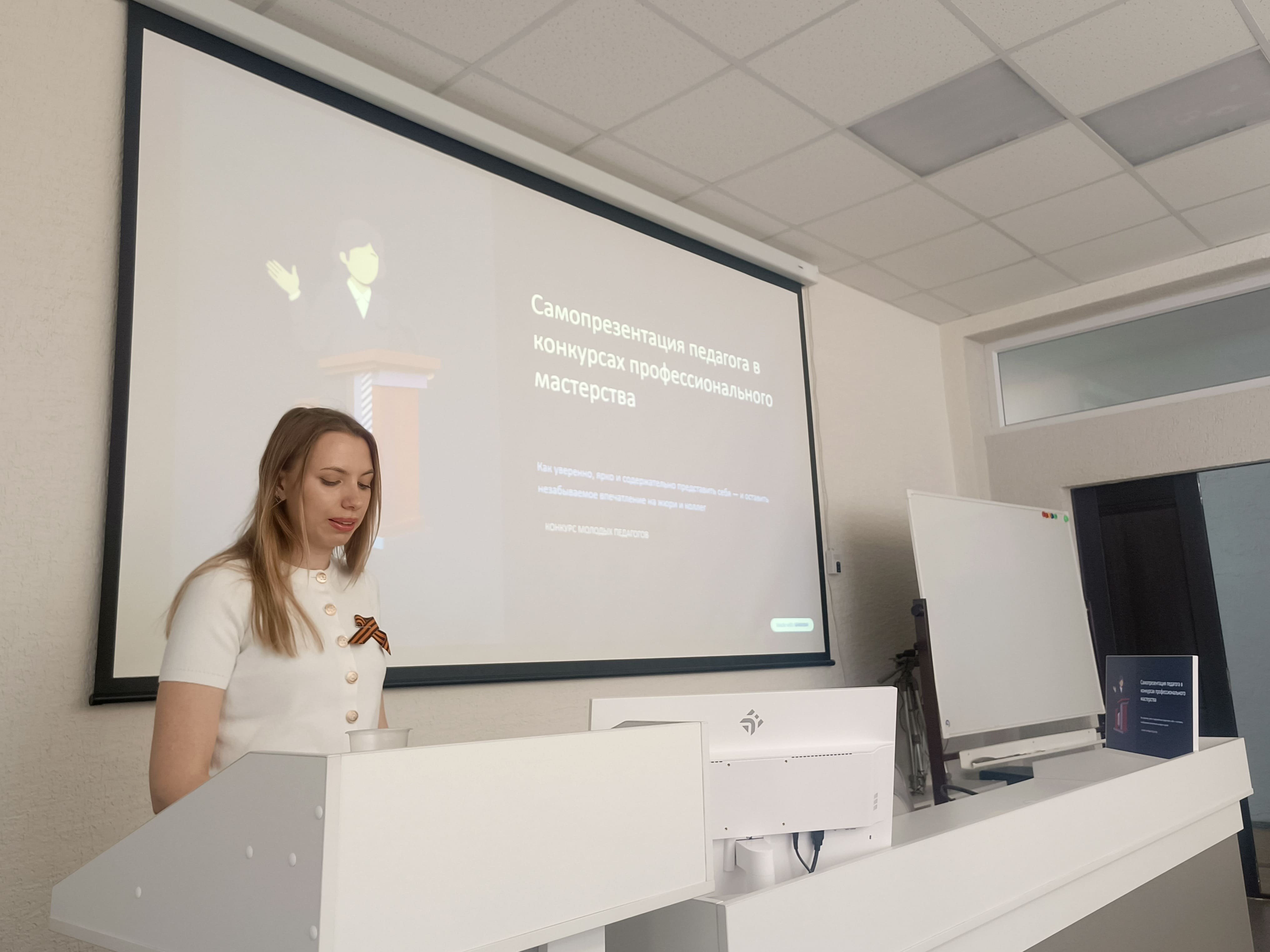 - Анастасия Александровна Варфоломеева, учитель БОУ г. Омска «СОШ № 144», победитель городского конкурса «Открытие» в 2024 году, рассказала, как создать яркую визитку (самопрезентацию) и почему так важна команда поддержки.