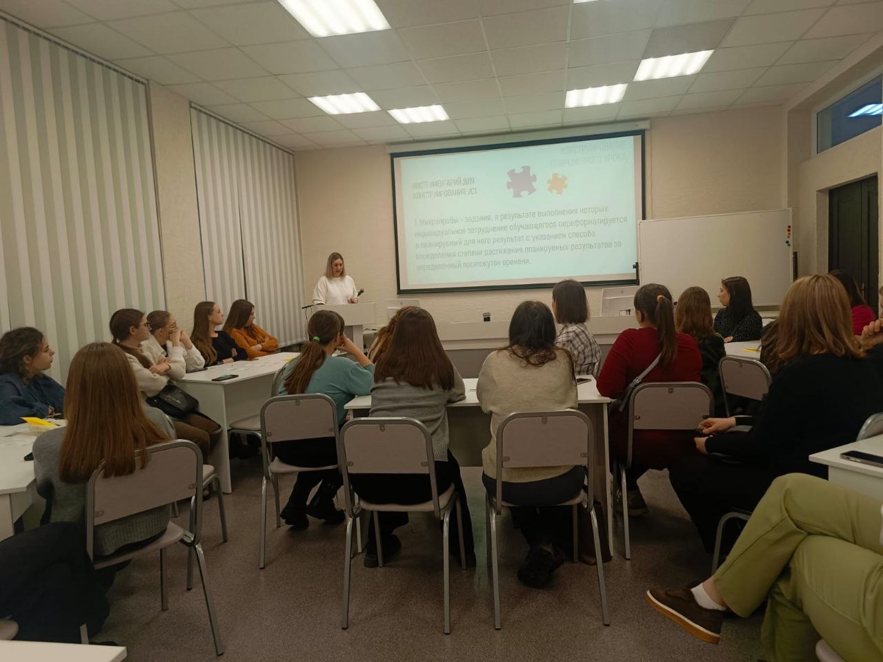 18 декабря 2025 года для молодых педагогов проведён семинар-практикум «Конструирование заданий для развития универсальных учебных действий и достижения предметных результатов». Семинар провели методисты центра: Михалун Наталья Сергеевна и Зимина Наталья Сергеевна. На семинаре молодые педагоги получили рекомендации и методики, направленные на улучшение профессионального мастерства и внедрение современных подходов к образованию.
